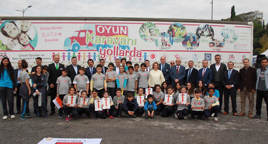 A farewell ceremony was held i the Harem, Istanbul for the "game caravan" supported by the World Ethnosport Confederation (WEC). The tradition started with the opening speech of Mehmet Mutlu, the president of the Federation of children's games and sports clubs (ÇOSKF). It ended with the good wishes of Özgül Özkan Yavuz, the Deputy Minister of Culture and Tourism. After the ceremony, the game caravan will stay in seven cities for two days and tour Azerbaijan. In the playing fields to be established, the Federation's trainers will use traditional street games (handkerchiefs, hopscotches, rope towing, sack racing, etc.).) there will be a big event to be played, and a festival atmosphere will be created that will instill Brotherhood and love of homeland for children.